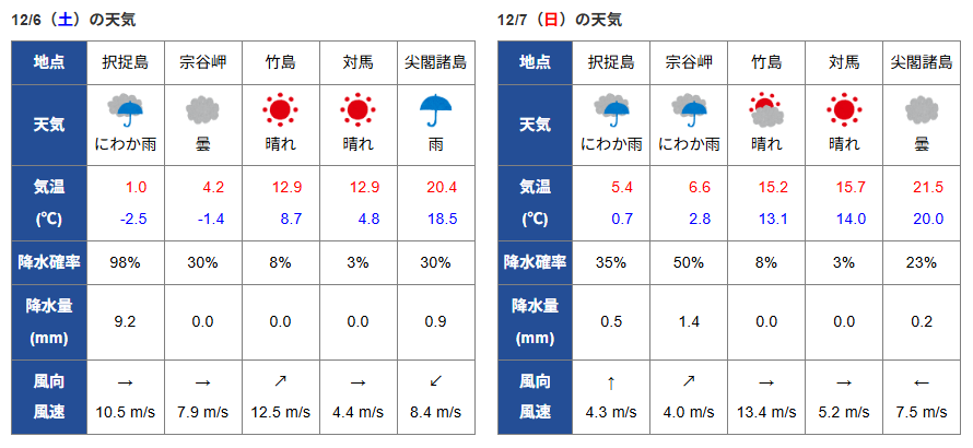 国境付近の天気